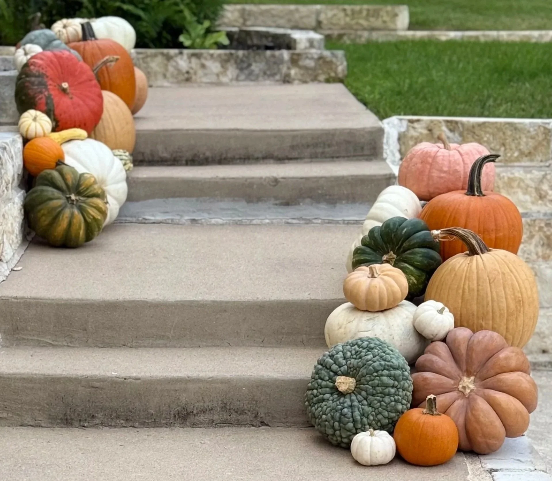 We deliver and style heirloom pumpkin displays for families and businesses across Austin, TX. Packages start at $335 with optional removal service.