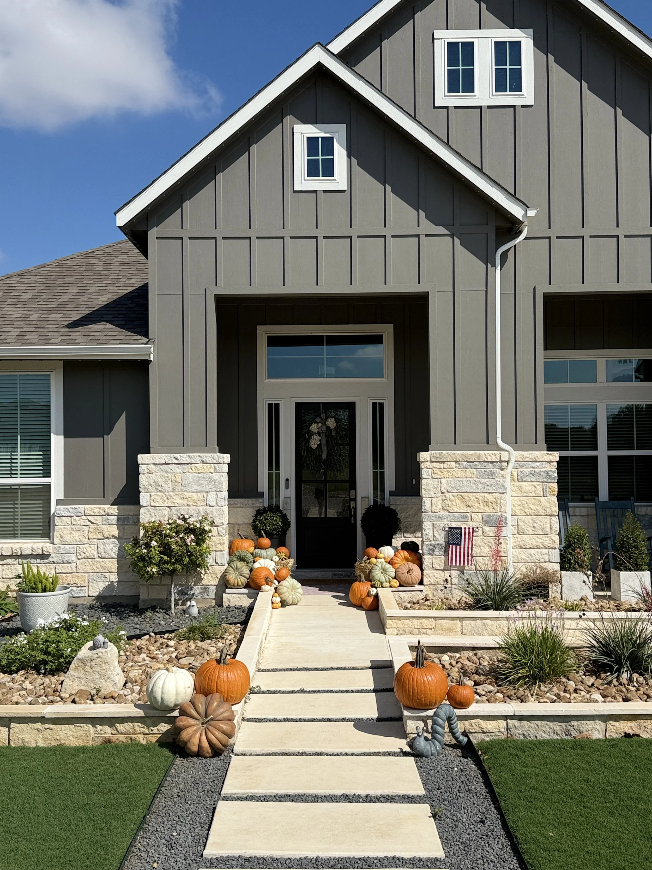 It includes ~45 pumpkins with 25-30 mini pumpkins and gourds artfully layered for a grand entrance that wraps your home in fall magic.